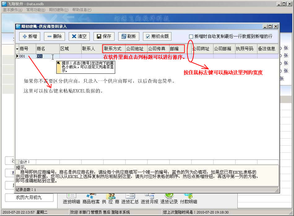 期初供应商信息录入