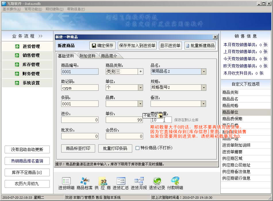 新建商品的期初数量说明