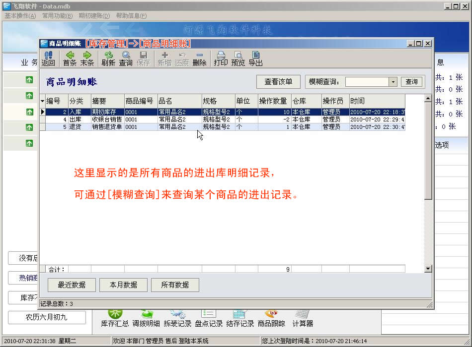 [商品明细账]的功能说明